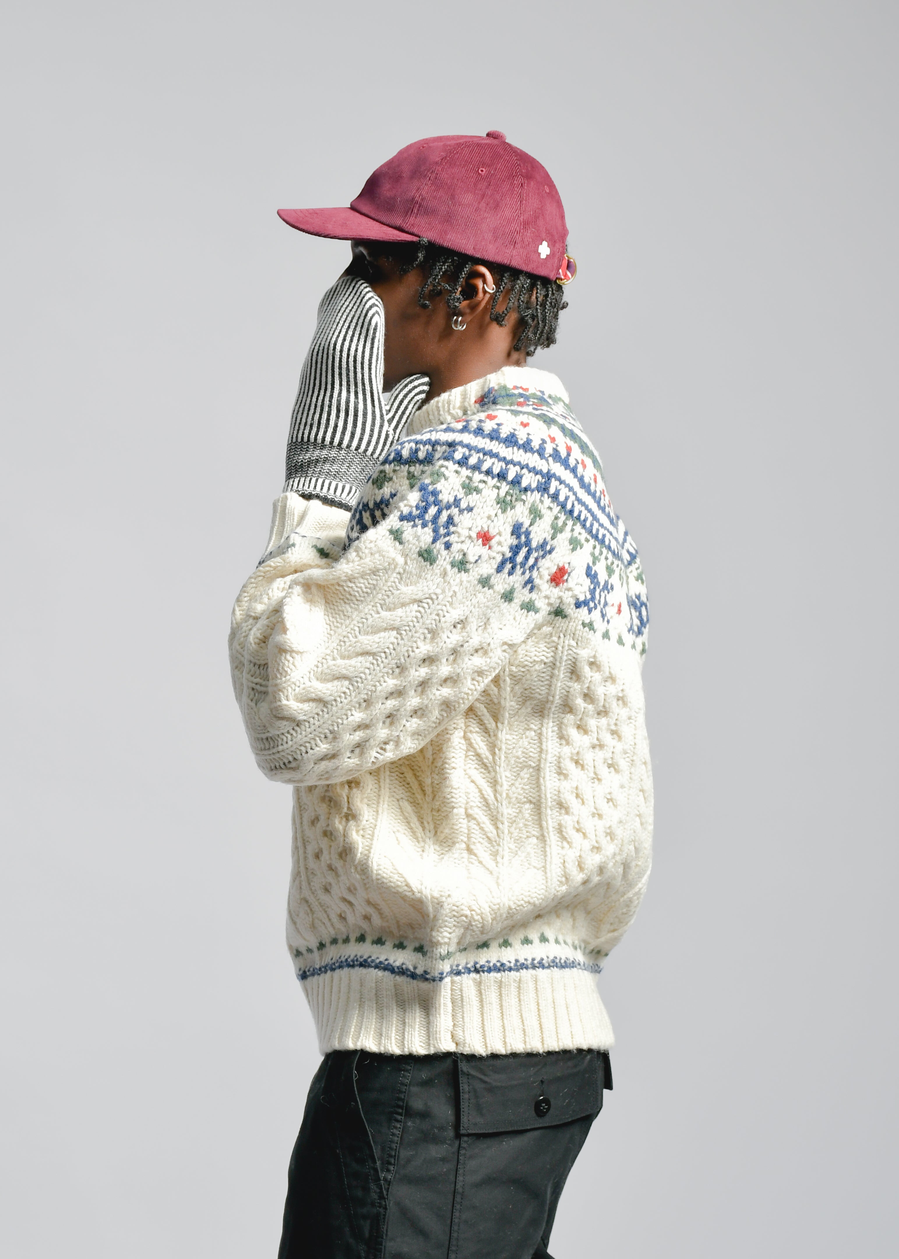 Made from a blend of natural wool and cashmere fibers. The cashmere blend provides excellent heat retention and a high-quality texture. The entire mitten is finished with ribbing.