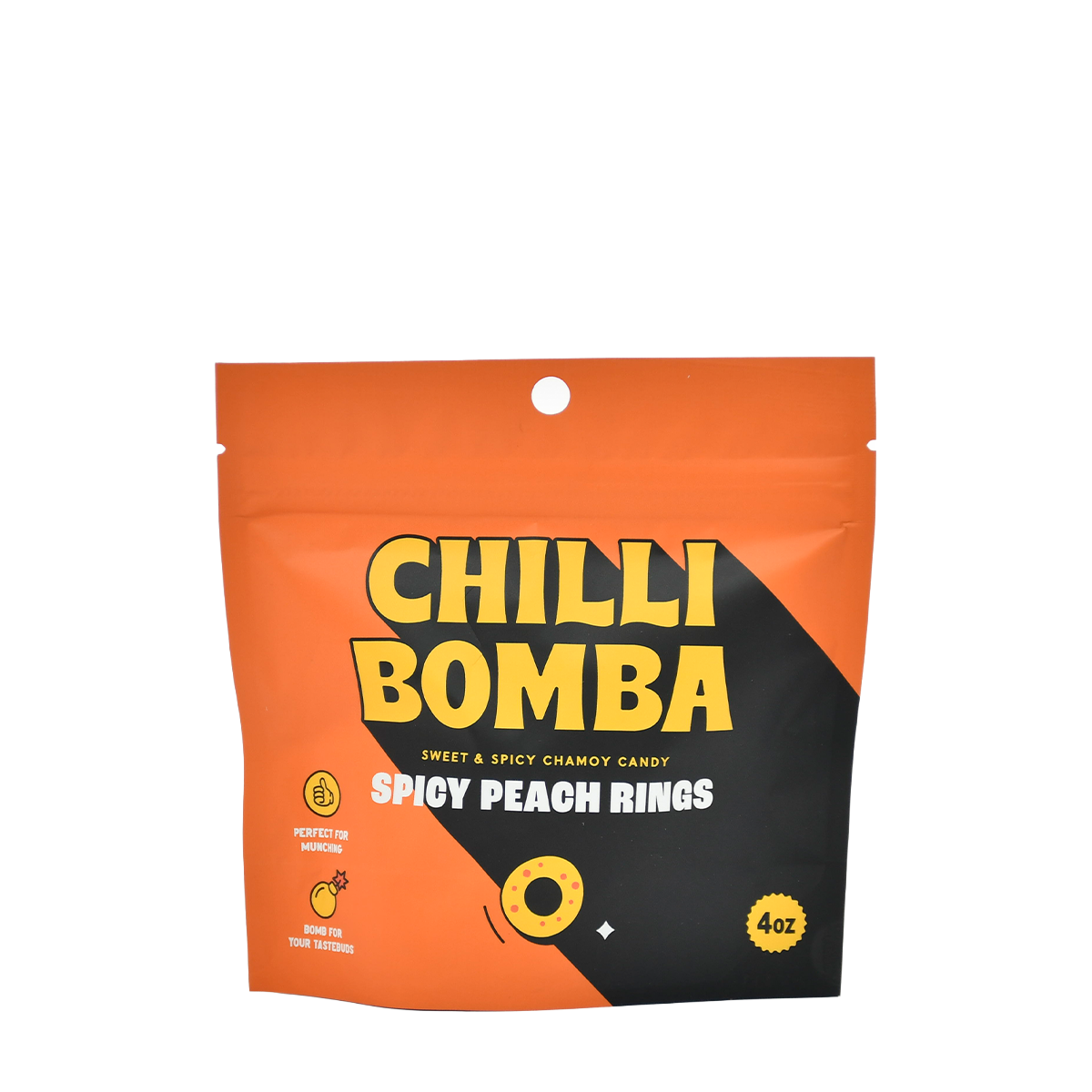 Thinking of summer just looking at these! Peach rings are a must. Blended with our bomb sauce and coated with chilies and seasonings to top off this mouth-watering candy.
