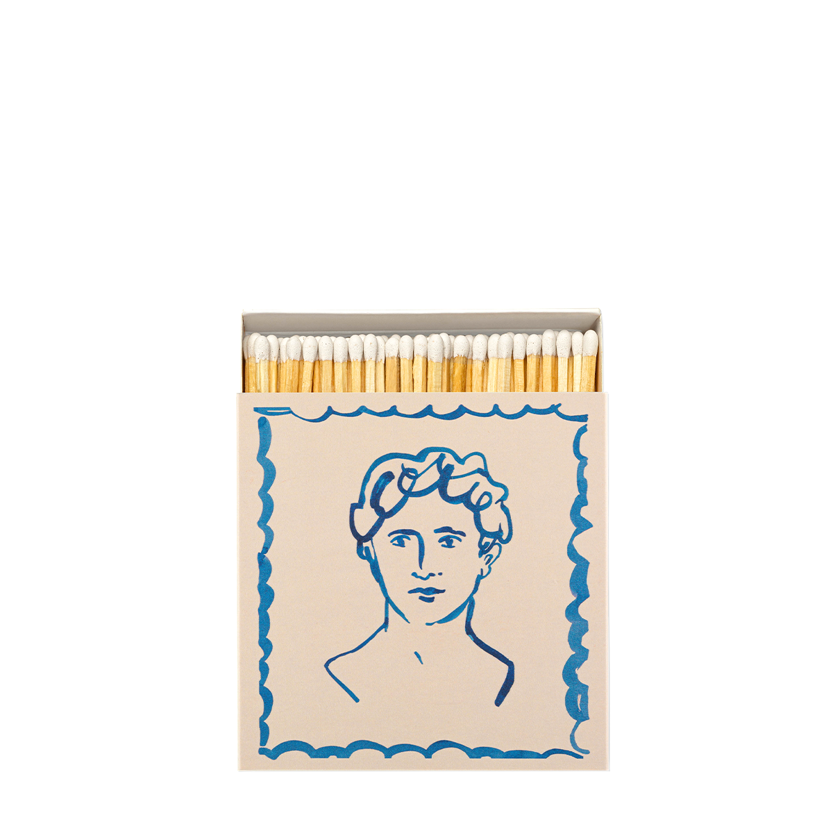 Oversized square matchbox with 100 safety matches, each measuring 100mm long.