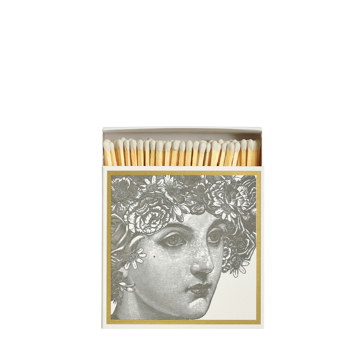 Oversized square matchbox with 100 safety matches, each measuring 100mm long.