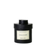 Asphalte Rose scented candle in vegetable black wax and essential oils, with wrought iron round pot and single cotton wick. Notes of white petals and stems, iris, dry pavement, and honey.