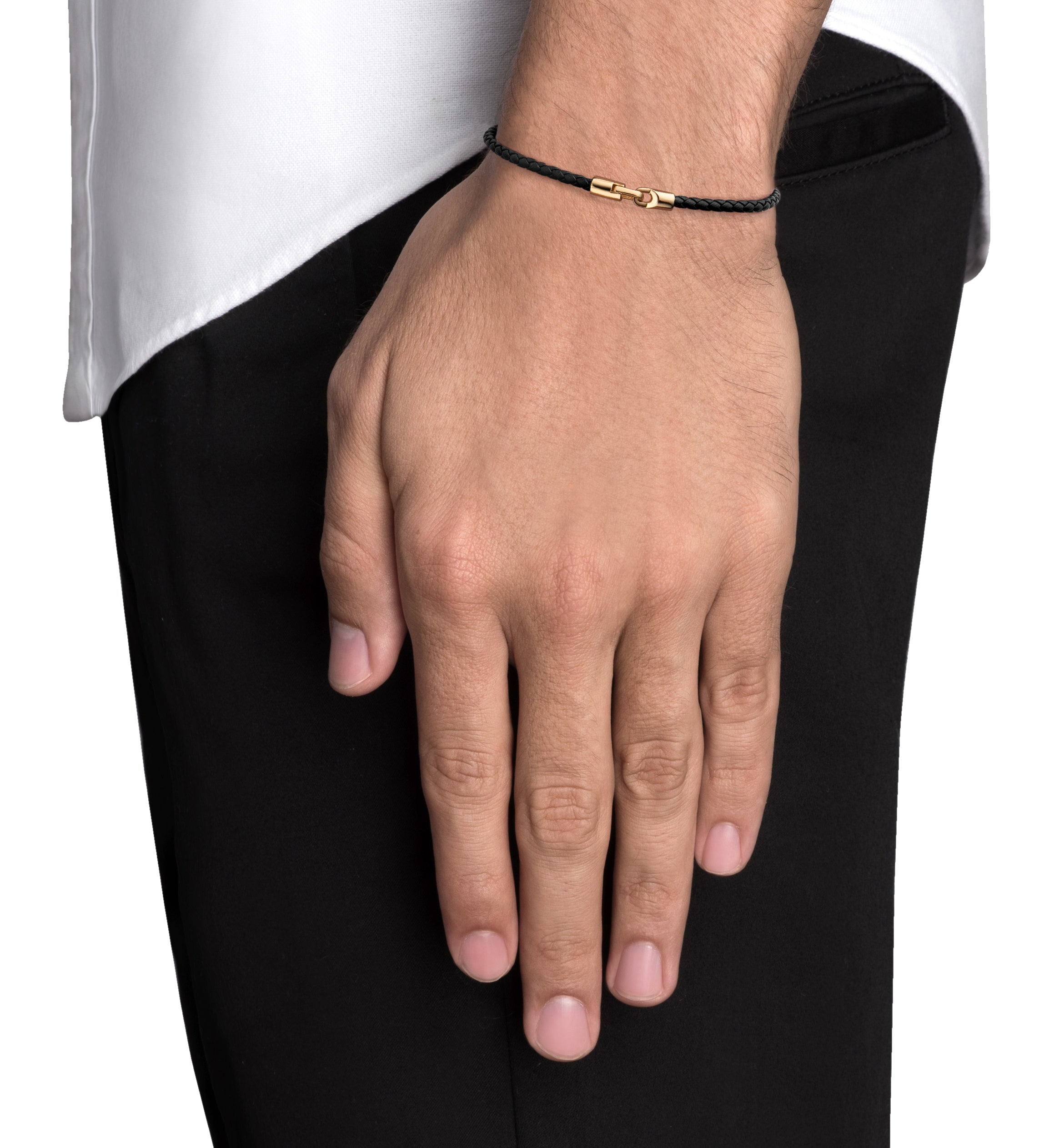 CRUZ LEATHER BRACELET - GOLD - BLACK