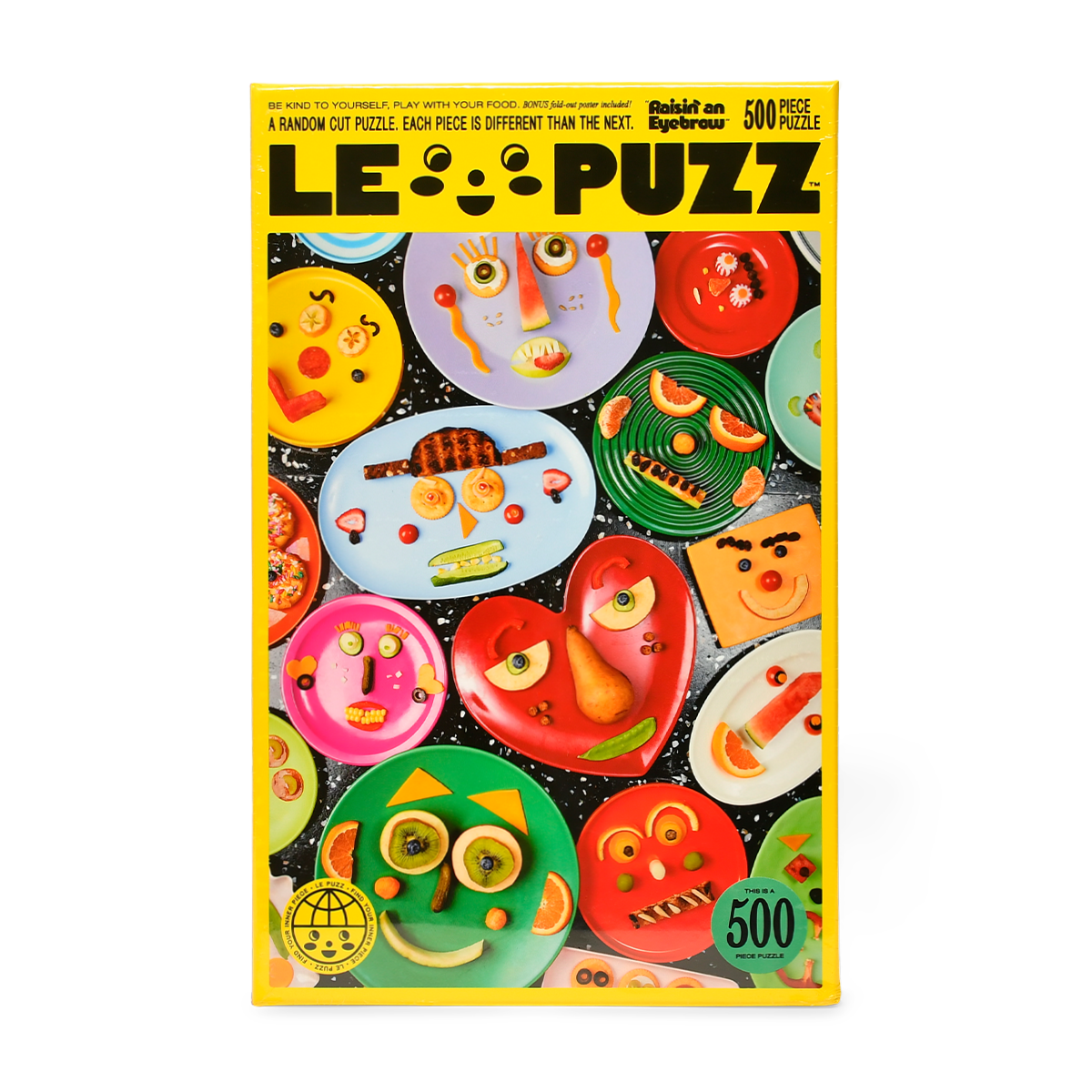 500 pieces. Random cut pieces - every piece is different than the rest. Completed puzzle measures 25" x 18"