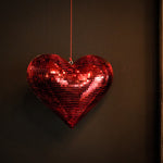 One of a kind, hanging Disco Heart. Made using 5mm glass tiles and finished with a hanging attachment at the top. A perfect way to celebrate and style disco in a unique way.