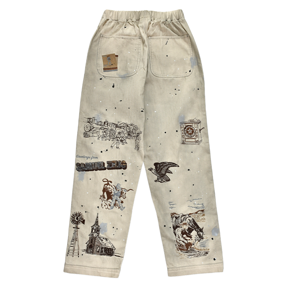This garment has undergone a dye and pigment spray process to achieve its uneven look. Due to the uncommon nature of this dye process, each garment will have markings or blemishes which should not be seen as flaws, but as unique characteristics of this piece