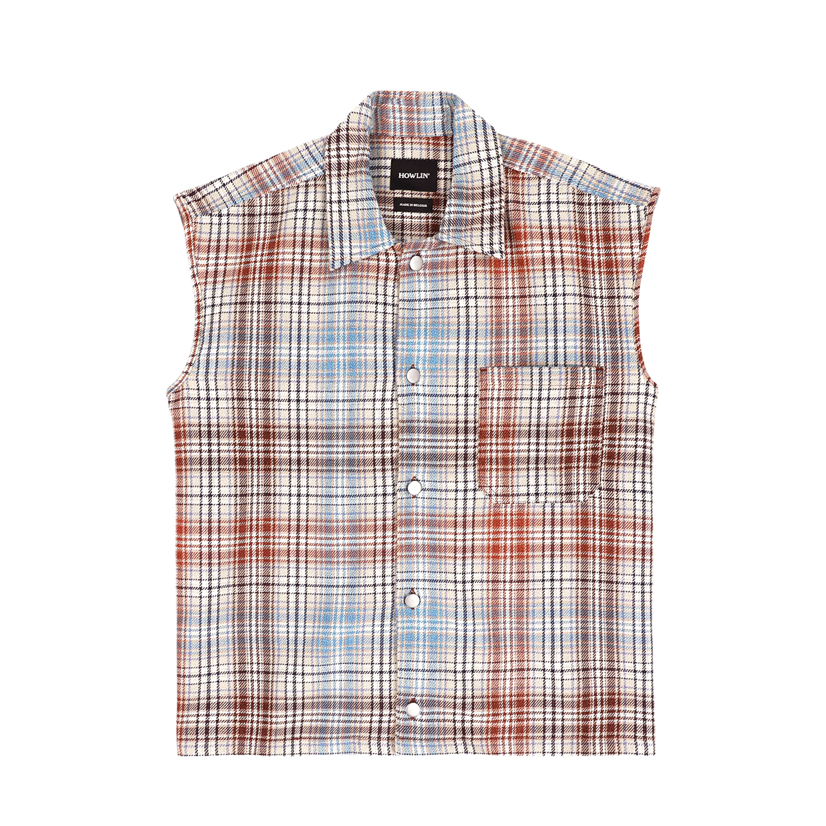 No More Sleeves is a sleeveless shirt with a full-metal jeans button closure and cut from an exclusive premium Japanese yarn-dyed cotton twill.