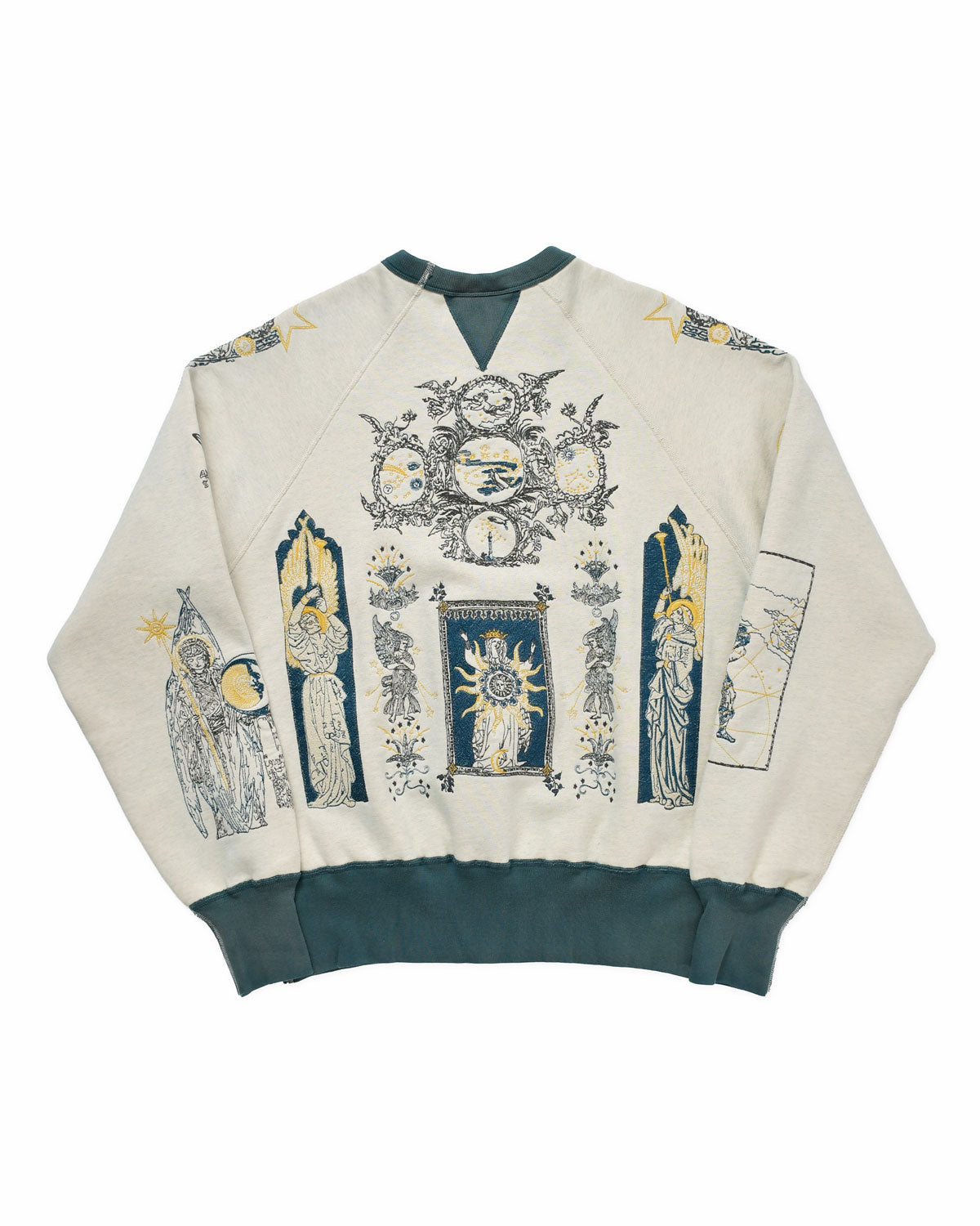 Featuring: 15oz heavyweight cotton french terry knit in Japan, 1" neck rib with 3/16" coverstitch, set in sleeves, double needle coverstitch seam construction, has undergone a vintage wash and dye to remove all shrinkage and give the garment a unique sun faded look.