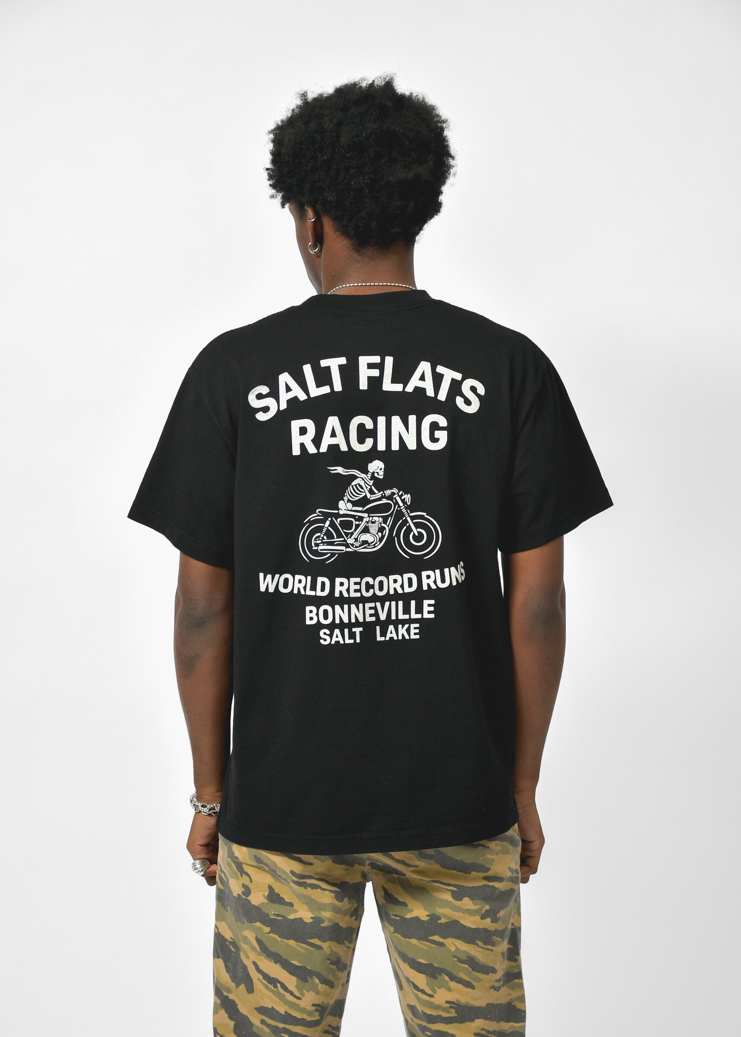 This tee pays tribute to the daredevils, grease-streaked machines, and world record runs that made history on the salt desert. Vintage-inspired, dust-ready, and built for chasing the redline.