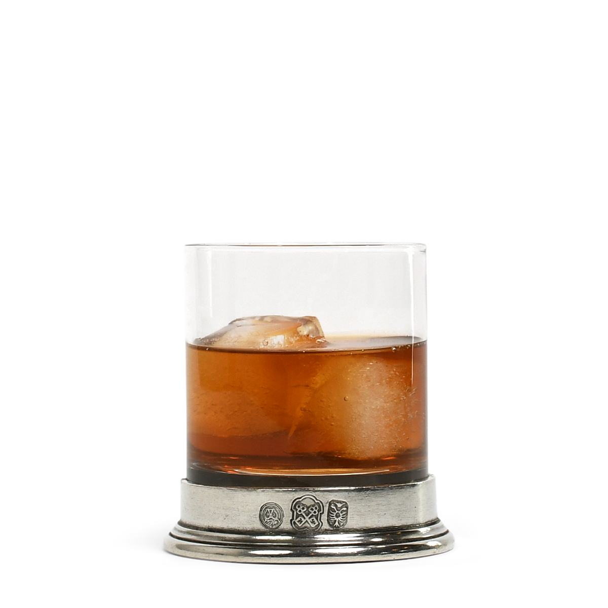 Glass with cast pewter foot. This quality whiskey glass has a cast pewter foot. Perfectly weighted piece ideal for the whiskey lover in your life.