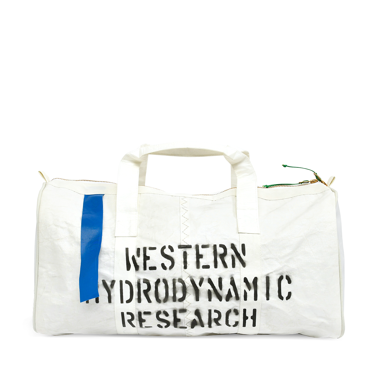Made in USA. One of one. Each bag is constructed out of a unique cut of upcycled sail. WHR stencil. Woven label. Manufactured by Mafia Bags.