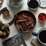 Collaboration with Chef Jon Adams pairs his kitchen chops with the coffee roasting skills of boyhood friend and business partner, Damien Pileggi, to create and earthy and spicy homage to the Texas panhandle. Combining Rival Bros Whistle & Cuss blend with ingredients such as smoked paprika and balsamic vinegar, Adams and Pileggi replicate the flavors of burnt ends. Think sweet, smoky, earthy, and downright delicious.